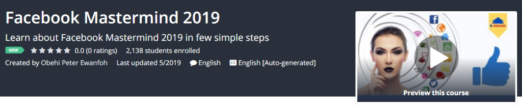 Facebook Mastermind 2019 Download What you’ll learn Facebook Mastermind 2019 Requirements Learn about Facebook Mastermind 2019 Description In this class,